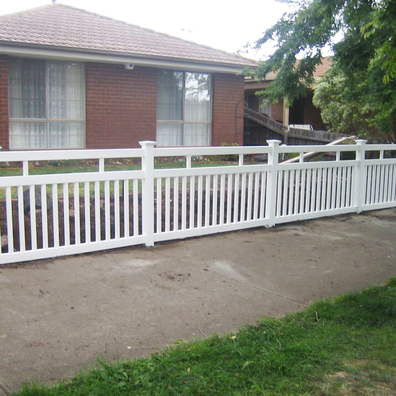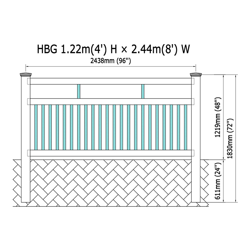 Dizajn je dokončený atraktívnymi poštovými čiapkami, vrátane čiapky New England, plochej čiapky a gotickej čiapky, čo vám umožňuje prispôsobiť vzhľad vášho plotu ďalej. Spodná koľajnica meria 2 "x 3-1/2" a je vopred vopred v 94 palcoch pre ľahkú montáž, zatiaľ čo horné a stredné koľajnice sú tiež vopred prehodené pre inštaláciu bez námahy a meria 2 "x 3-1/2" pri 94 palcoch.