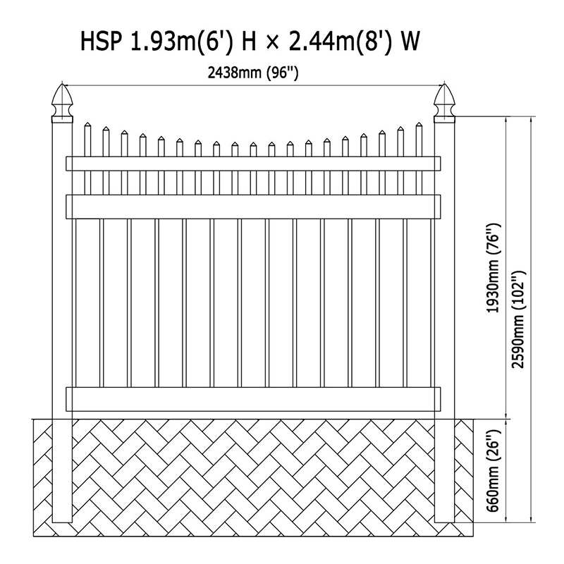 Plot stojí v štandardnej výške 72 palcov, čo poskytuje ideálnu rovnováhu medzi viditeľnosťou a odlúčením. Pre tých, ktorí majú špecifické potreby, ponúkame rôzne výšky a šírky, čím sa zabezpečí, že sa vám perfektne hodí pre svoju nehnuteľnosť. Každá časť meria štandardnú šírku 96 palcov, pričom možnosti prispôsobenia sú k dispozícii, aby vyhovovali vašim požiadavkám na projekt.